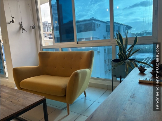El interior de este apartamento está completamente amoblado y equipado con todas las comodidades necesarias para una vida cotidiana cómoda y práctica. Cuenta con aire acondicionado para mantener una temperatura agradable en todo momento, armarios empotrados y una cocina equipada con barra estilo americano. También cuenta con calentador y el servicio de gas domiciliario para una mayor comodidad en el uso del agua y el gas.